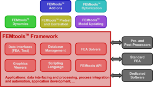 FEMtools configurations can be enhanced with add-on tools for integration with commercial FEA programs or advanced functionalities, ensuring seamless data exchange and specialized analysis capabilities.